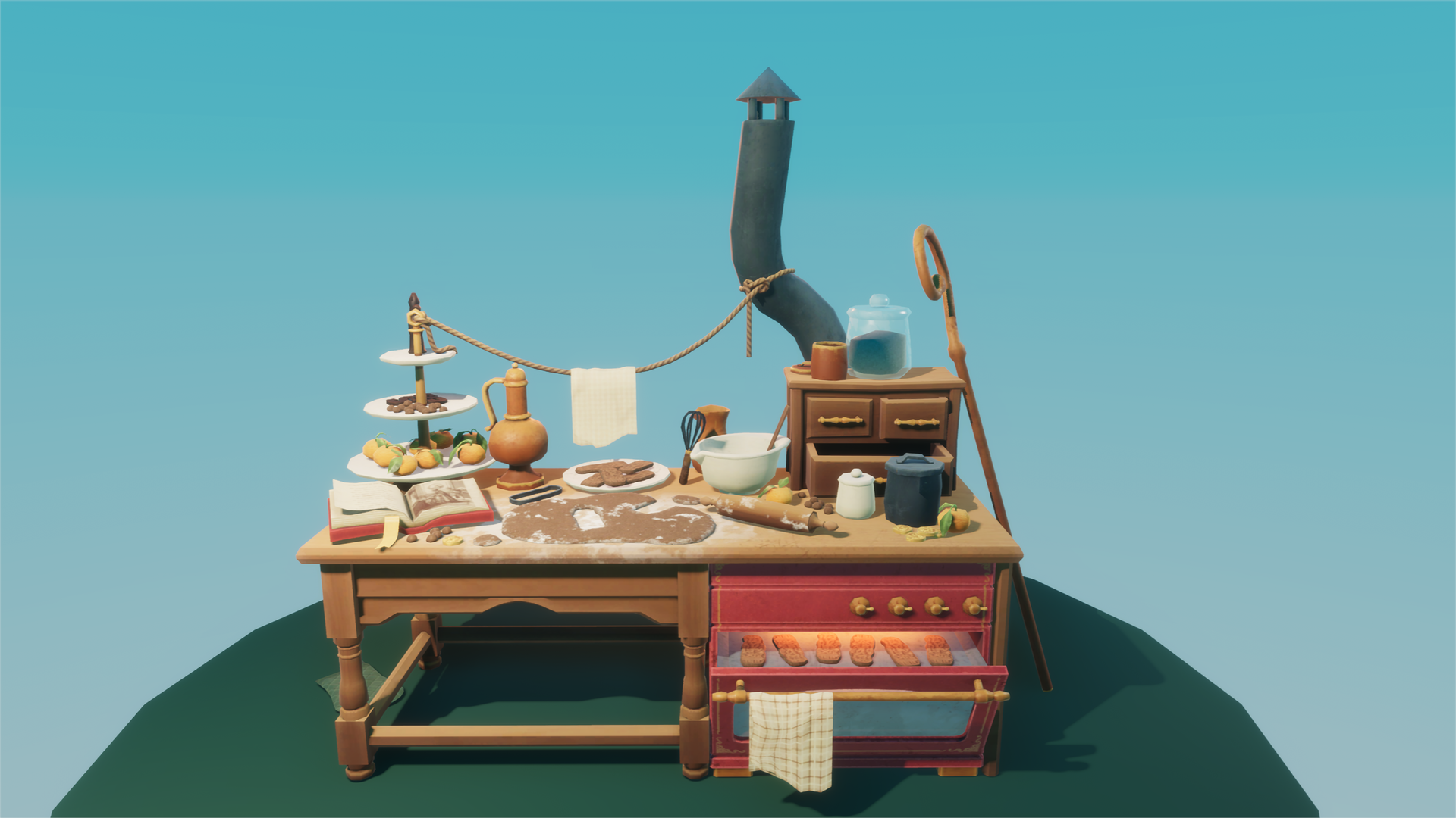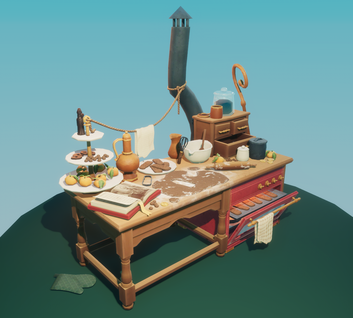 For this project I modeled and textured the desk of a "holy pastry chef". I tried to make the workspace feel lived in and optimize the assets for games.
